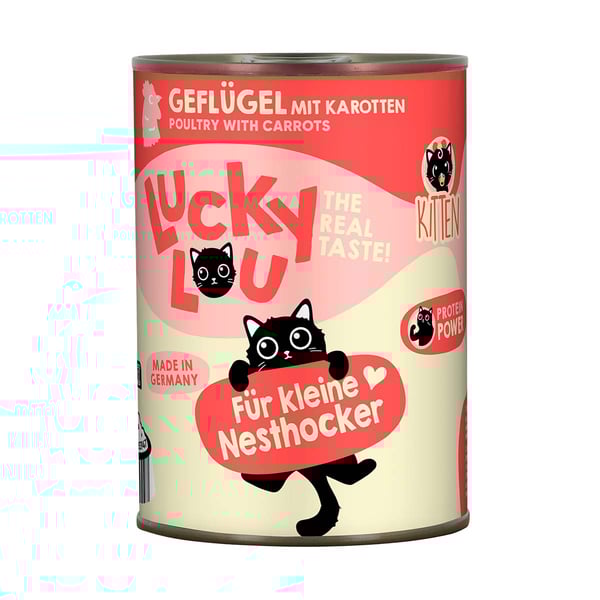 Langweiligen Einheitsfraß gibt’s woanders – Lucky Lou Lifestage ist in 18 verschiedenen Sorten erhältlich. Damit du deinen Katzen immer frisches Futter servieren kannst, gibt es Lucky Lou Lifestage in Pouchbeuteln mit 125 g Inhalt sowie in Dosen zu 200 g und 400 g. Und Multipacks gibt’s natürlich auch!