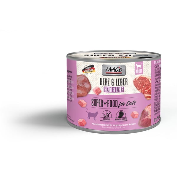 Mit MAC's Cat Katzenfutter Fleischmenü Herz & Leber entscheidest du dich für ein Produkt, das auf wissenschaftlich entwickelten Rezepturen basiert. Diese hochwertige Nassnahrung für Katzen bietet ein ausgewogenes Verhältnis an Nährstoffen und Vitaminen, die speziell auf die Bedürfnisse deines Tieres abgestimmt sind. Die Kombination aus Herz und Leber sorgt nicht nur für einen intensiven Geschmack, sondern auch für eine nahrhafte Mahlzeit, die deine Katze lieben wird.