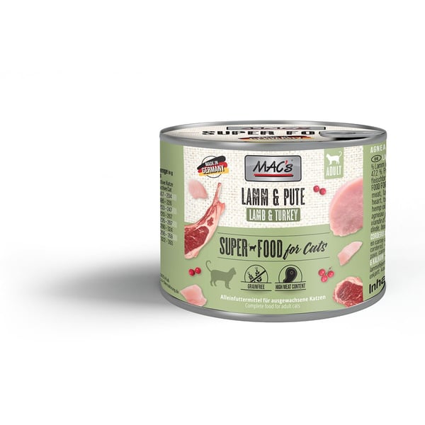 Das MAC's Cat Katzenfutter Fleischmenü Lamm & Pute bietet deiner Katze eine ausgewogene Mahlzeit mit hochwertigen Zutaten. Die Kombination aus zartem Lamm und Pute sorgt für einen schmackhaften Genuss, der speziell für Katzen entwickelt wurde. Die Rezeptur wurde in Zusammenarbeit mit Wissenschaftlern erstellt und enthält wertvolle Vitamine, die zur Vitalität deiner Katze beitragen können.