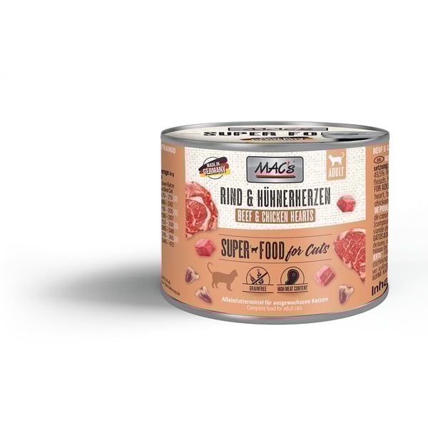 Die Rezeptur des MAC's Cat Fleischmenü Rind und Hühnerherzen ist das Ergebnis intensiver wissenschaftlicher Forschung. Jede Zutat wurde sorgfältig ausgewählt, um den Ernährungsbedürfnissen deiner Katze gerecht zu werden. Vertraue auf die Qualität und das Fachwissen, das in jedes Produkt von MAC's Cat einfließt.