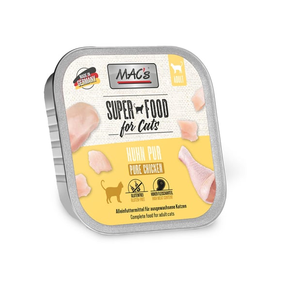 Mit Mac's Cat Huhn Pur entscheidest du dich für ein Nassfutter, das auf die natürlichen Bedürfnisse deiner ausgewachsenen Katze abgestimmt ist. Die Rezeptur basiert auf wissenschaftlichen Erkenntnissen und bietet hochwertige Inhaltsstoffe, die deinem Stubentiger eine ausgewogene Ernährung bieten. Der hohe Fleischanteil sorgt für eine ausreichende Versorgung mit wichtigen Aminosäuren, die essenziell für die Vitalität deiner Katze sind. Dank der getreidefreien Zusammensetzung ist dieses Futter ideal für Katzen mit Unverträglichkeiten geeignet.