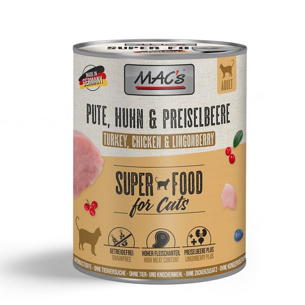 MAC's CAT Pute, Huhn & Preiselbeere wird mit viel Liebe und Sorgfalt in Deutschland hergestellt. Die Verwendung hochwertiger Zutaten und eine schonende Zubereitung garantieren eine gleichbleibend hohe Qualität. Du kannst sicher sein, dass du deiner Katze eine Mahlzeit bietest, die nicht nur köstlich ist, sondern auch alle wichtigen Nährstoffe liefert, die sie für ein aktives und zufriedenes Leben benötigt.