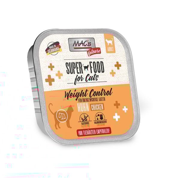 MAC's Cat Vetcare Weight Control mit Huhn ist ein Diätfuttermittel für ausgewachsene Katzen.