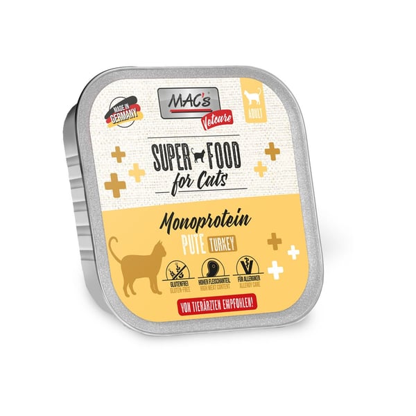 MAC's Cat Vetcare Mono für ausgewachsene Katzen mit Pute ist ein Alleinfuttermittel mit Monoprotein zur Ausschlussdiät und Unverträglichkeiten.