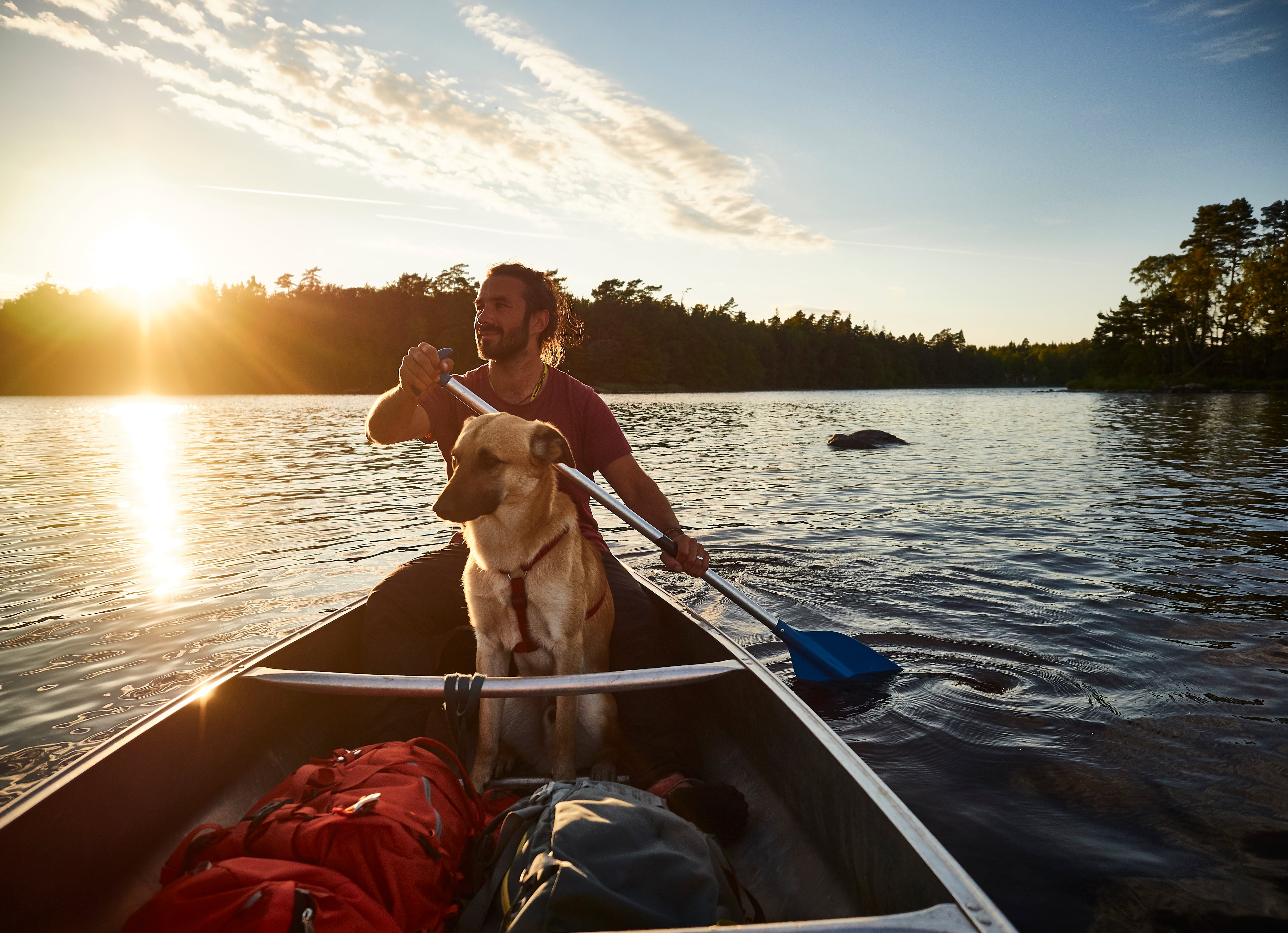 Seid ihr beide sicher im Kanu, fange vorsichtig an zu paddeln. Bedenke, dass auch das Paddel und die erforderliche Bewegung etwas Neues für deinen Vierbeiner ist. Gib ihm genügend Zeit, diese Bewegungen kennenzulernen. Vielleicht lasst ihr euch zunächst nur etwas auf dem Wasser treiben.