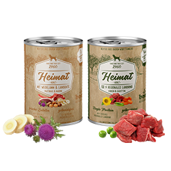 Die getreidefreien Heimat-Nassfuttermenüs werden schonend im eigenen Saft gegart. Für das schmackhafte Futter wird ausschließlich frisches Fleisch in Lebensmittelqualität aus größtenteils regionaler Landwirtschaft verarbeitet. Alle ausgewählten Zutaten unterliegen strengsten Qualitätskontrollen. Die hohen Qualitätsstandards werden stets überwacht und für jede einzelne Dose garantiert – zum Wohl Deines Hundes. Das Heimat Sortiment umfasst Produkte mit vorzüglichen Fleischkombinationen und Single Protein-Produkte für kleine Sensibelchen.
