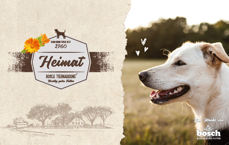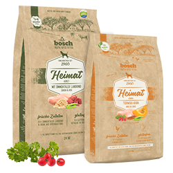 Um die regionale Landwirtschaft zu fördern, Lieferketten zu verkürzen und Ressourcen zu schonen, werden für die köstlichen Heimat-Produkte frische und erlesene Rohstoffe aus unserer Heimat bezogen (z.B. Kürbis von einem Landwirt aus Schrozberg und frische Erbsen eines Vertragsanbaus in Naicha, nur wenige Kilometer vom Firmenstandort entfernt). Abgerundet werden die unwiderstehlichen Menüs durch die Zugabe von knackigen Hagebutten oder Lachsöl, welches am klimaneutralen Firmenstandort selbst herstellt wird. Der Grundgedanke der köstlichen Heimat-Linie von bosch Tiernahrung ist, dem nachhaltigen Umgang mit verfügbaren Ressourcen in besonderer Weise gerecht zu werden.