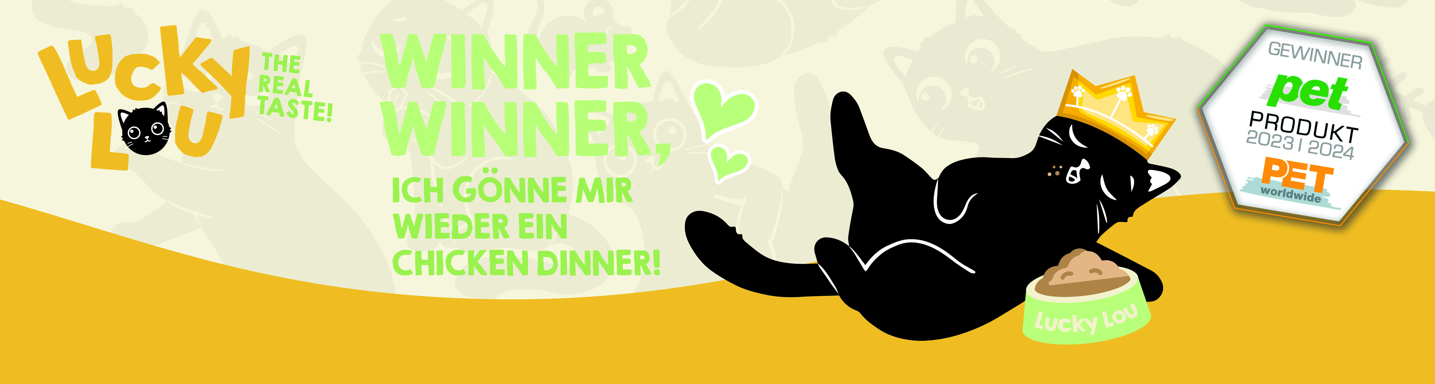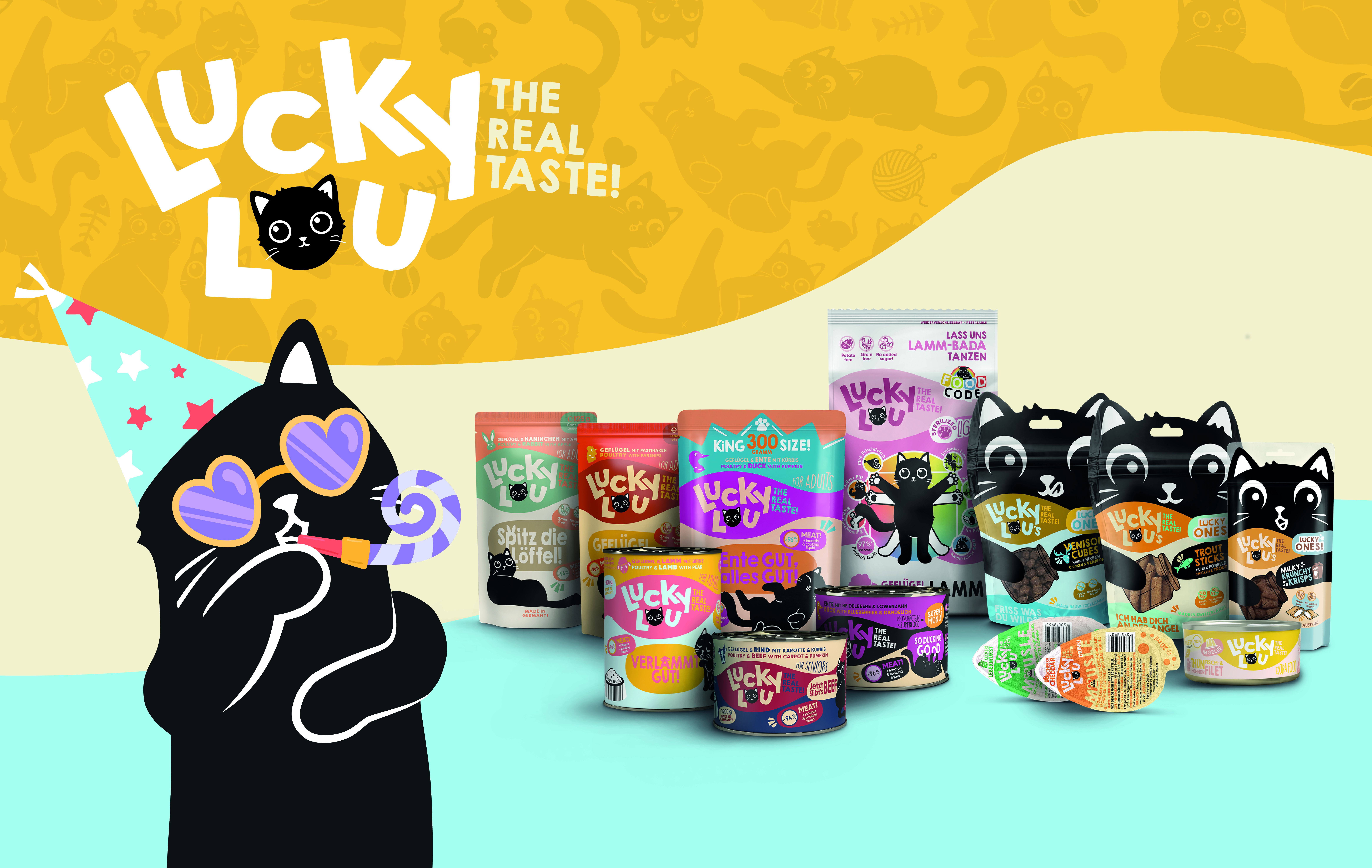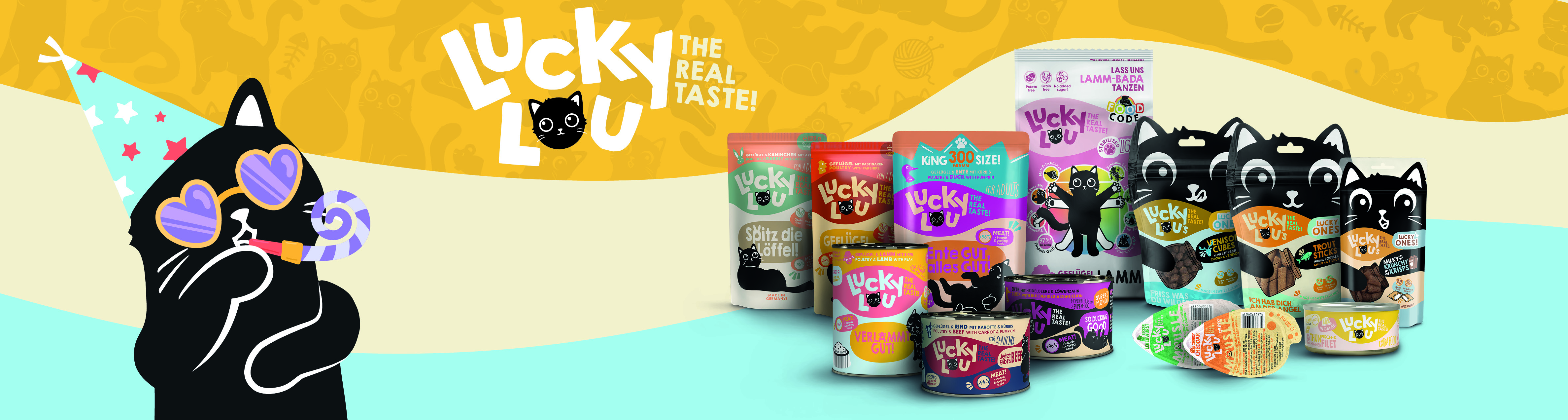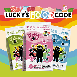 Hey du! Ich bin Lucky Lou, aber du kannst mich auch Lucky oder Lou nennen! Wie du magst, bin da ganz locker, ganz easy. Weil ich was richtig Gutes im Napf haben will, hab ich mir mal Gedanken gemacht, was wir Katzen wirklich wollen. Wir sind die weltweit besten Jäger, wir fangen einfach alles! Wir gönnen uns Fleisch, Fisch und Insekten, weil wir es können und es uns schmeckt! Logo besteht mein hochwertiges Katzenfutter deswegen aus den besten und leckersten von mir persönlich ausgewählten Zutaten. Mein Expertenteam aus Tierärzten und Futterexperten hat die dazu passenden ausgewogenen Rezepturen für mich entwickelt.