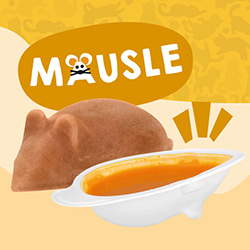 Bestes Monoprotein-Paté in spannender Mausform als leckere Ergänzung zu meinen coolen Alleinfutter-Sorten. Darin sind tolle Zutaten wie Filet, Fisch und Öl in vier leckeren Sorten und das superpraktisch zu portionieren. Zudem habe ich den Cheesus gemacht und Wasser zum flüssigen Käsetraum geupgradet! Meine Lucky Lou Mäusle-Drinks gibt es in zwei Sorten: Cheddar und Gouda – wir Feinschmecker merken den Unterschied. Du kannst meine kalorienarmen Drinks mit Wasser verdünnt zum cheesy Cocktail de luxe machen – geschüttelt, nicht gerührt! Meine Mäusle Drinks sind ebenso perfekt als extra Käse-Topping auf dem Futter.