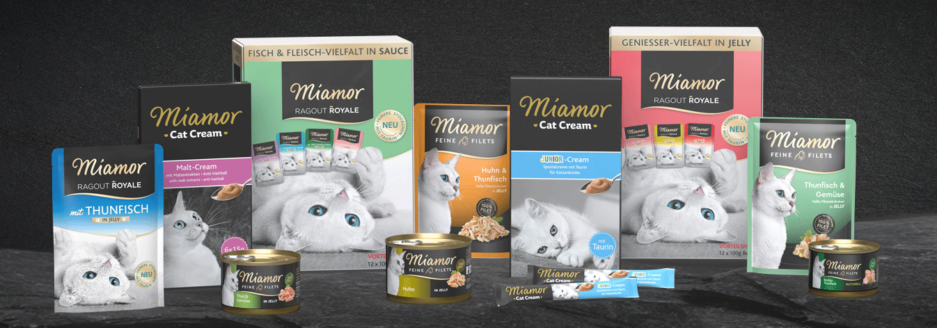 Miamor ist eine Tochtermarke der Finnern GmbH und hat sich auf die Produktion von hochwertigstem Katzenfutter spezialisiert. Bei uns finden Sie deshalb nicht nur Miamor Nassfutter und Katzensnacks, sondern auch Ergänzungsfutter, was dafür sorgt, dass Ihre Katze immer mit allen nötigen Nährstoffen versorgt ist. Miamor ist eine gute Wahl, wenn Sie ein neues Katzenfutter suchen: Die Zusammensetzung und Rezeptur spricht für sich.