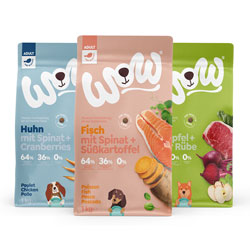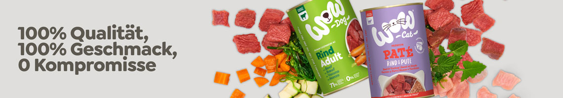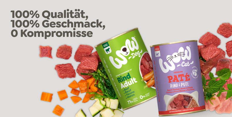Das österreichische Familienunternehmen WOW versorgt Vierbeiner mit Futter aus hochwertigen Zutaten, das mit größter Sorgfalt und bevorzugt regionalen Rohstoffen zu 100% in Österreich hergestellt wird. Alle fein abgestimmten Alleinfuttermenüs werden mit Experten nach dem Rezept der Natur entwickelt: Frisches Fleisch, hochwertige Innereien, gesunde Öle und köstliches Gemüse sorgen dafür, dass das Futter besonders gut schmeckt und dabei auch noch den Nährstoffbedarf von Hunden oder Katzen optimal abdeckt.