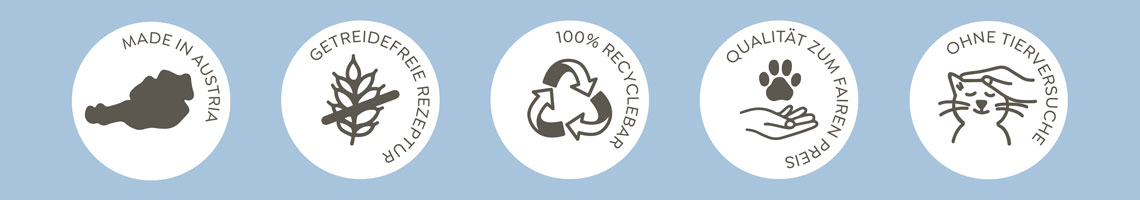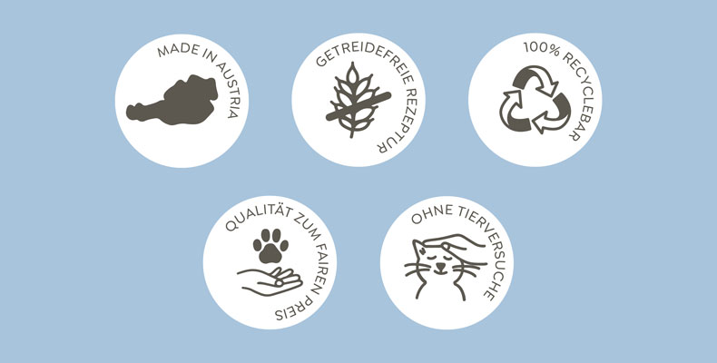 Natürliche Alleinfuttermenüs, die zu 100% in Österreich und mit bevorzugt regionalen Rohstoffen hergestellt werden. Die fein abgestimmten und ausgewogenen Rezepturen versorgen Hunde nicht nur mit allem, was sie benötigen, sondern schmecken auch noch köstlich.