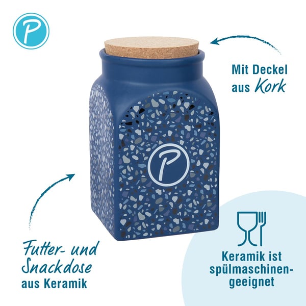 Die Petlando Futter- und Snackdose Terrazzo bietet eine stilvolle und praktische Lösung für die Aufbewahrung von Haustierfutter und Leckerlies. Dank des luftdichten Korkdeckels bleiben die Inhalte frisch und aromatisch. Die hochwertige Keramik sorgt für eine langlebige Nutzung und das ansprechende Terrazzo-Design fügt sich harmonisch in jedes Zuhause ein.