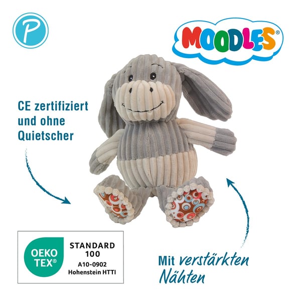 Mit dem Petlando Hundespielzeug Moodles Esel Tom bietest du deinem Hund ein sicheres und schadstofffreies Spielvergnügen. Das OEKO-TEX und CE zertifizierte Material stellt sicher, dass keine schädlichen Stoffe enthalten sind, sodass dein Vierbeiner unbedenklich spielen und kuscheln kann. Die sorgfältige Verarbeitung und die hochwertigen Materialien machen dieses Kuscheltier zu einem langlebigen Begleiter für deinen Hund.