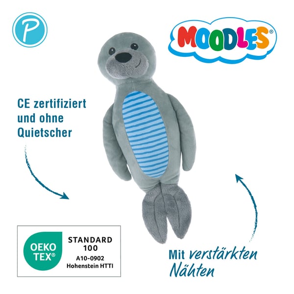 Mit dem Petlando Hundespielzeug Moodles Robbe Robert bietest du deinem Hund ein sicheres und schadstofffreies Spielvergnügen. Das OEKO-TEX und CE zertifizierte Material stellt sicher, dass keine schädlichen Stoffe enthalten sind, sodass dein Vierbeiner unbedenklich spielen und kuscheln kann. Die sorgfältige Verarbeitung und die hochwertigen Materialien machen dieses Kuscheltier zu einem langlebigen Begleiter für deinen Hund.