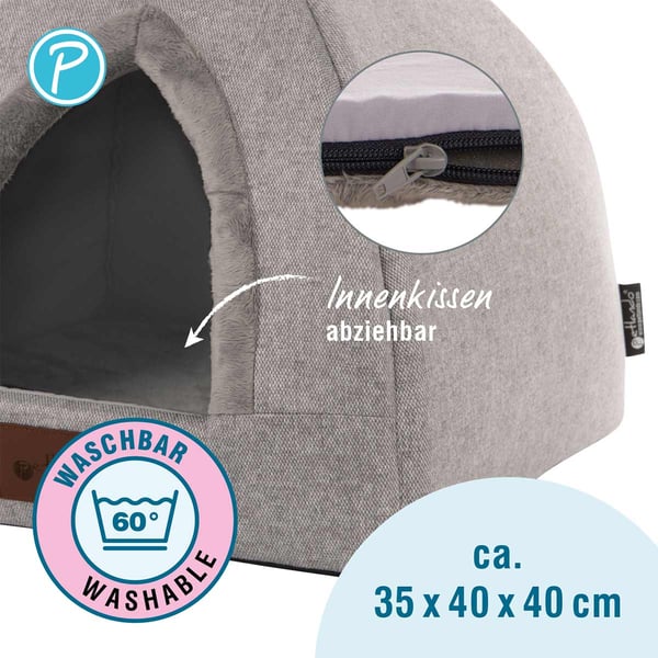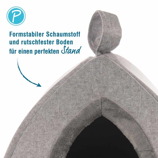Die Petlando Katzenhöhle Bastia stone bietet deiner Katze einen gemütlichen Platz zum Entspannen. Der formstabile Schaumstoff sorgt für eine langlebige Nutzung, während das abziehbare Innenkissen die Reinigung erleichtert.