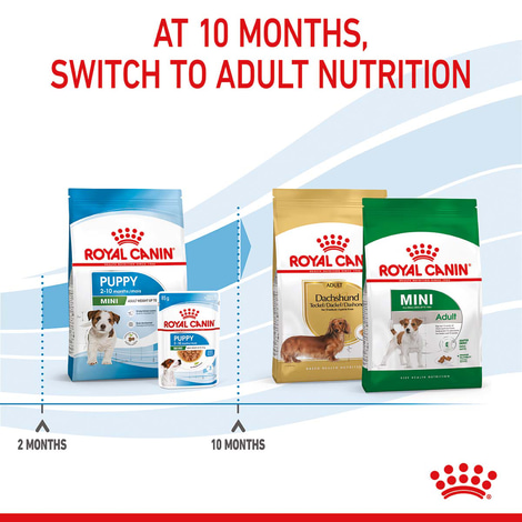 Um den individuellen Vorlieben verschiedener Hunde gerecht zu werden, ist ROYAL CANIN Mini Puppy auch in Soße erhältlich. Wenn Sie eine Mischfütterung Ihrer Hunde in Betracht ziehen, befolgen Sie einfach unsere Fütterungsrichtlinien, um sicherzustellen, dass Ihr Hund die richtige Menge an Nass- und Trockennahrung erhält.