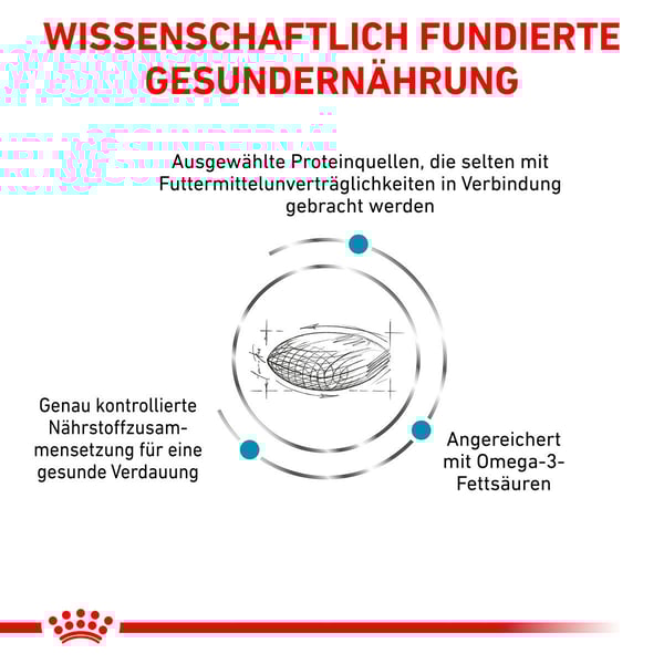 ROYAL CANIN Sensitivity Control ist eine ausgewogene und nährstoffreiche Rezeptur, die speziell dazu entwickelt wurde, Hunden mit Nährstoffintoleranzen und Futtermittelunverträglichkeiten zu helfen.