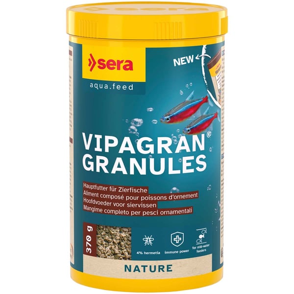 sera Vipagran Granules kommt ohne Farb- und Konservierungsstoffe aus, was es zu einem natürlichen und unbedenklichen Hauptfutter für Deine Fische macht. Die ausgewogene Rezeptur sorgt dafür, dass Deine Fische alle notwendigen Nährstoffe erhalten, die sie für ein aktives und gesundes Leben benötigen. So kannst Du sicher sein, dass Du Deinen Fischen nur das Beste bietest.