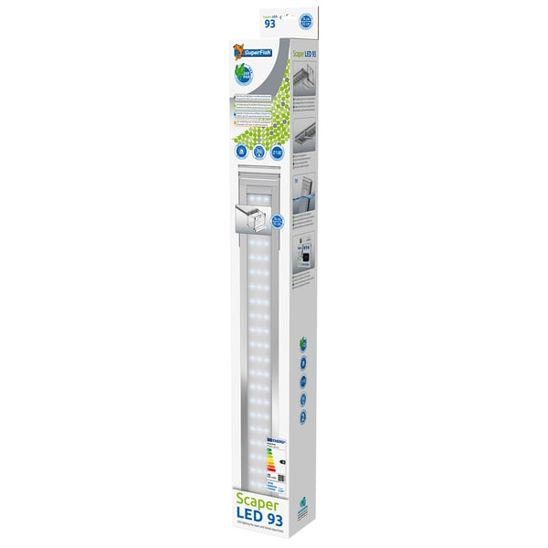 Die SuperFish Scaper LED wird als komplettes Set geliefert, inklusive 200 cm Kabel, Schalter, Adapter und allem notwendigen Zubehör. Dies ermöglicht eine einfache und schnelle Installation. Zusätzlich kann die Beleuchtung mit dem optionalen SuperFish LED Controller oder einer Zeitschaltuhr betrieben werden, um die Lichtverhältnisse individuell anzupassen.