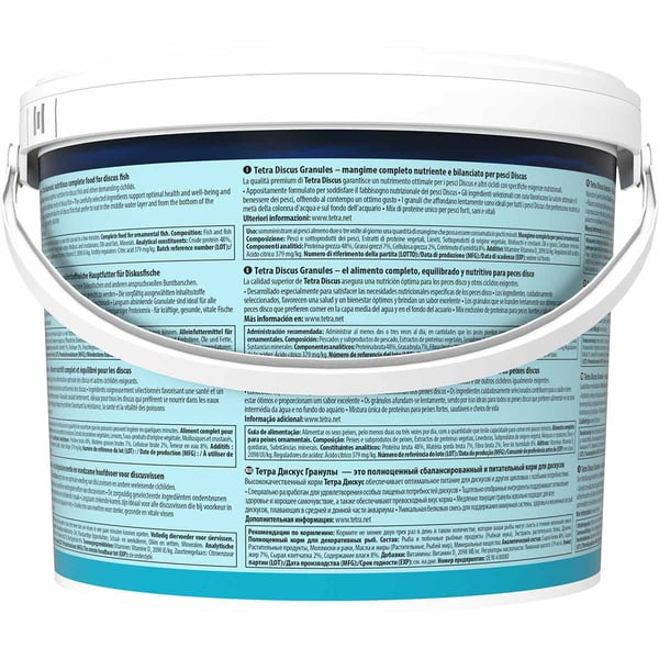 Tetra Discus ist optimal den besonderen Ernährungsbedürfnissen von Diskusfischen in Farbe, Form und Rezeptur angepasst. Das Hauptfutter in Granulatform enthält alle lebenswichtigen Nährstoffe, Vitamine und Spurenelemente. Das langsam sinkende Futter ermöglicht eine artgerechte Futteraufnahme bei Diskussen.
