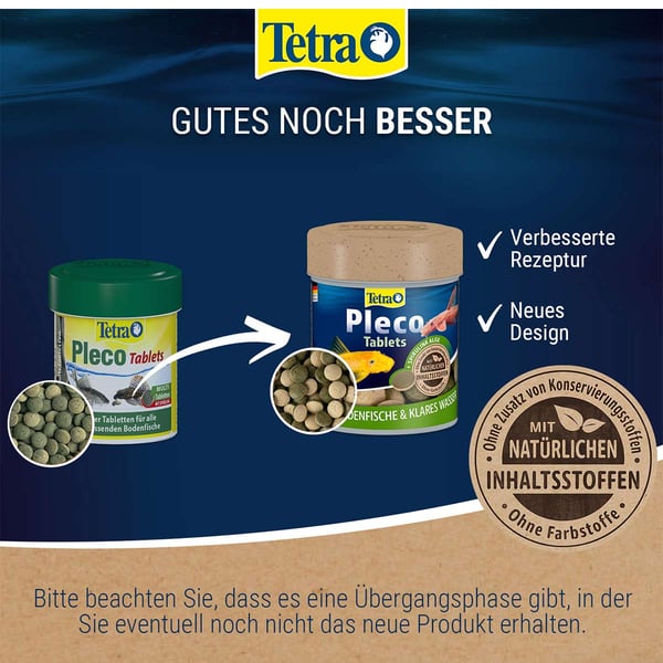 Tetra Pleco Tablets sind die ideale Nahrung für am Boden lebende und scheue Fische. Durch die sich langsam auflösende Tablette wird ihre Ernährung jetzt einfacher und auch die Fische nehmen sie gerne an. Als Besitzer kann man sie einfach platzieren und fördert so das Wohlergehen seiner Fische.