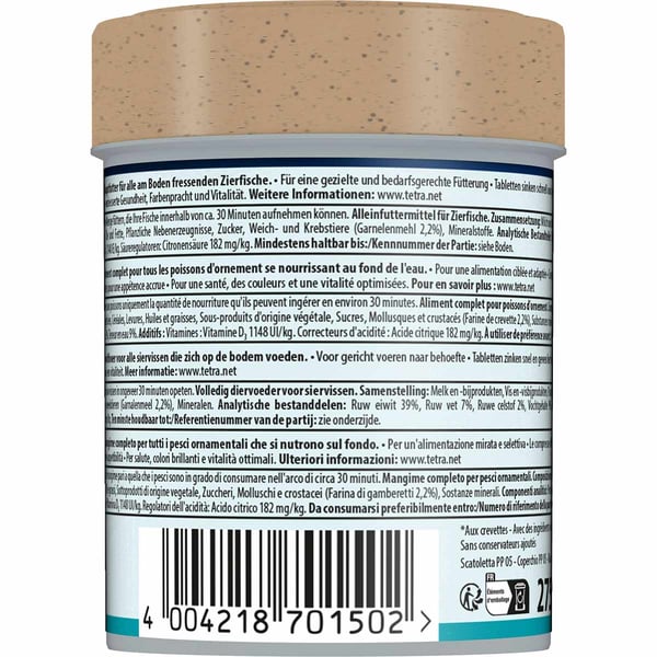 Tetra TabiMin Futtertabletten ist ein Hauptfutter speziell für Boden fressende Zierfische - mit allen lebenswichtigen Nährstoffen. Stabilisiertes Vitamin C sorgt für erhöhte Abwehrkräfte, fördert gesundes Wachstum und verhindert ernährungsbedingte Mangelerscheinungen.