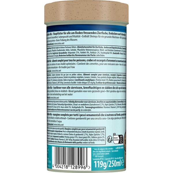 Tetra Wafer Mix Fischfutter Krebsfutter 1l für Fleisch und Pflanzen fressende Bodenfische und Krebse. Durch die feste Konsistenz wird das Aquariumwasser nicht getrübt. Die formstabilen Wafers entsprechen dem natürlichen Fressverhalten.