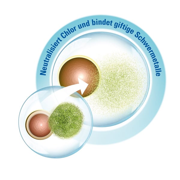 • fischschädliche Stoffe des Leitungswassers werden sofort neutralisiert: Chlor und Chloramin werden eliminiert und Schwermetalle wie Kupfer, Zink und Blei mittels Komplexbildner gebunden