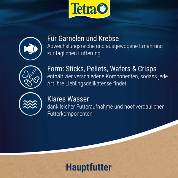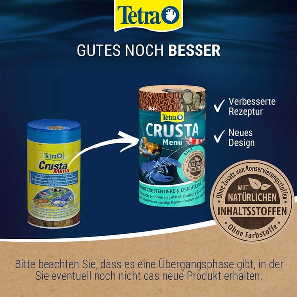 TetraCrusta Menu ist ein Hauptfutter für Garnelen und Krebse. Für eine abwechslungsreiche und artgerechte Ernährung. Die vier aufeinander abgestimmten Futter sichern eine ausgewogene und abwechslungsreiche Ernährung.