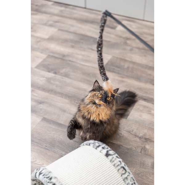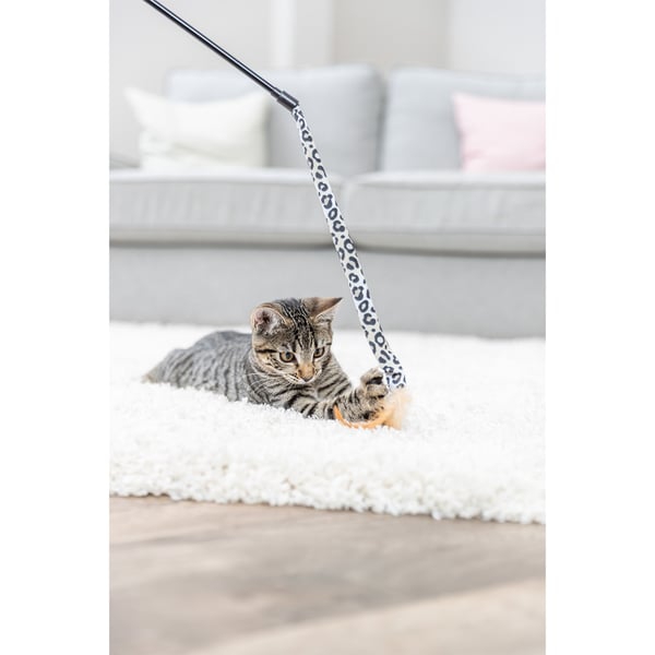 Die Trixie Spielangel ist mit einer stabilen Kunststoffstange ausgestattet, die leicht in der Hand liegt. Der angenehm weiche Plüschanhänger aus Polyester sorgt für ein sanftes Spielerlebnis. Die Spielangel ist mit einer Stab-Länge von 51 cm ideal für tägliche Spielzeiten, die Energie abbauen und Bewegung fördern. Gestalte das Spiel flexibel und abwechslungsreich, um deine Katze immer wieder neu zu begeistern.