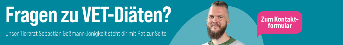 VET Diätfutter kann bei gesundheitlichen Problemen zu mehr Wohlbefinden beitragen. Es ist allerdings kein medizinisches Produkt und sollte nur in Rücksprache mit dem behandelnden Tierarzt gefüttert werden. Während der Fütterung solltest du dein Tier regelmäßig vom Tierarzt kontrollieren lassen.