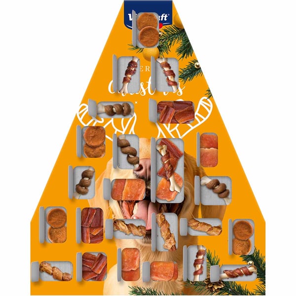 Auch in diesem Jahr können sich kleine und große Hunde wieder auf den Vitakraft® Adventskalender mit 24 köstlichen Überraschungen freuen. Hinter jedem Adventstürchen warten herzhaft fleischige Snacks, die den Vierbeinern die Zeit bis Heiligabend versüßen und das Hundeherz höher schlagen lassen. Ideal zum artgerechten Verwöhnen und Belohnen.Kauspaß in bester Qualität versprechen z. B. die CHICKEN Coins:Hühnchentaler, die mit purem Fleisch frisch zubereitet werden. Unwiderstehlich lecker sind auch die CHICKEN und die DUCK Filets.Die CHICKEN + VEGGIE DUO CARROT liefern durch das getrocknete Gemüse wertvolle natürliche Vitamine und das Hühnchenfleisch sorgt für eine gesunde Portion Protein.Aber auch die beliebten Bonas-Produkte dürfen bei der perfekten Fleischsnack-Auswahl nicht fehlen: Die leckeren kleinen Calciumknochen sind raffiniert umwickelt mit schmackhaftem Enten- oder Lammfleisch und steigern Bissen für Bissen die Vorfreude auf Weihnachten.Alle enthaltenen Snacks werden ohne Zusatz von Zucker, Soja, Weizen, Ei, Milchprodukten und Fleischmehlen hergestellt. Auch auf alle Zusatzstoffe, von Konservierungsmitteln bis hin zu Geschmacksverstärkern, wird bei der Herstellung konsequent verzichtet.Übrigens: Für mehr Frische sind die Leckerlis in diesem Adventskalender in kleine Beutel verpackt. Ideal auch zum Mitnehmen!