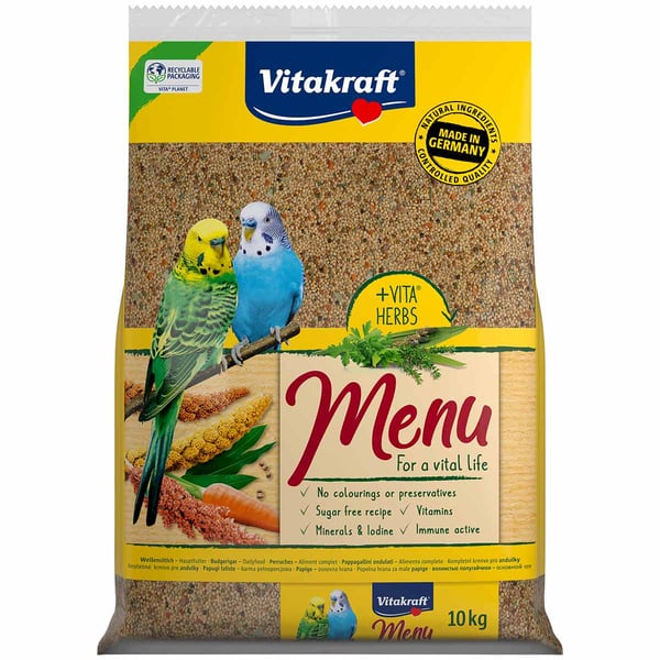 Die 10 kg Packung von Vitakraft Menu Sittich ist ideal für größere Volieren und den regelmäßigen Bedarf. Die nachhaltige Verpackung aus recyclingfähiger Folie unterstreicht das Engagement für Umweltfreundlichkeit. So kannst du sicher sein, dass du nicht nur deinen Vögeln, sondern auch der Umwelt etwas Gutes tust.