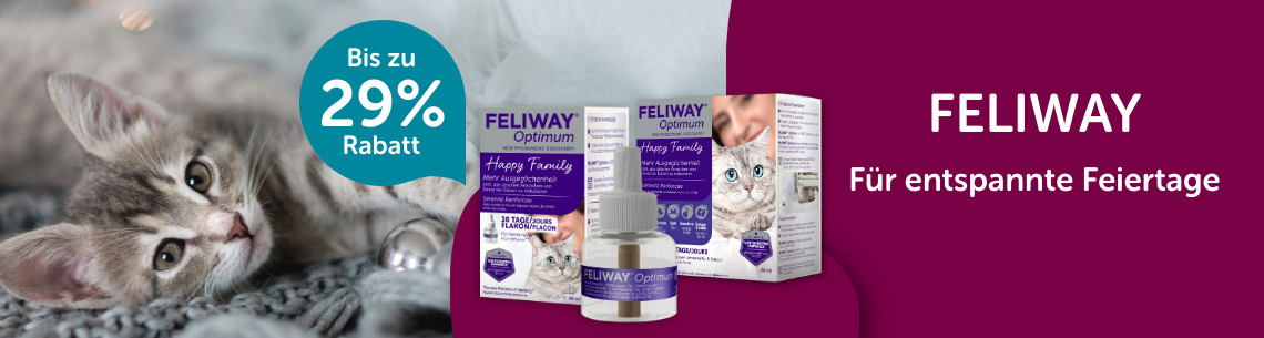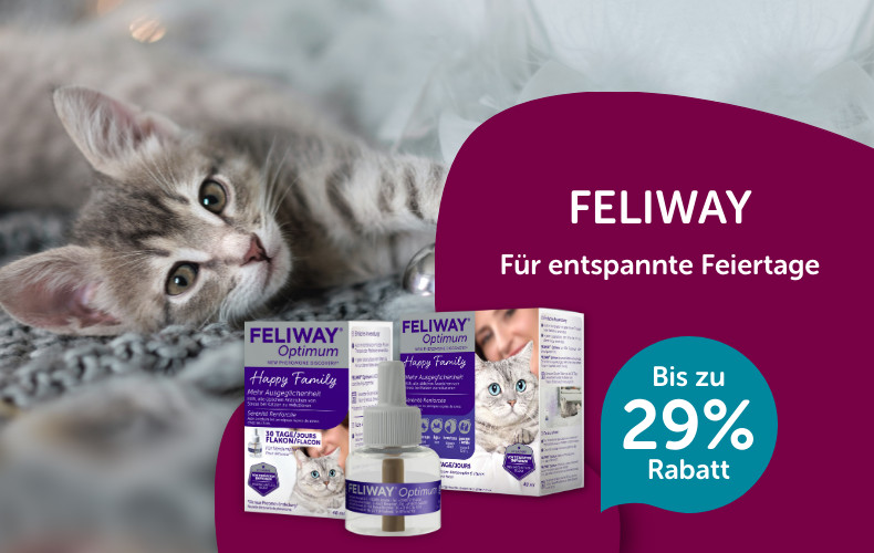 • Entdecke jetzt Feliway-Produkte für entspannte Feiertage mit deiner Katze und sichere dir bis zu 29% Rabatt