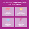 mit Lachs und Erbsen: Fleisch und tierische Nebenerzeugnisse*, Fisch und Fischnebenerzeugnisse (u.a. Lachs 4% im Häppchen**), Getreide, Gemüse (u.a. getrocknete Erbsen 1.2%, das entspricht Erbsen 4%), pflanzliche Nebenerzeugnisse, Mineralstoffe, Zucker, Öle und Fette. *93% natürlich. **Häppchen machen 40% des Produkts aus.