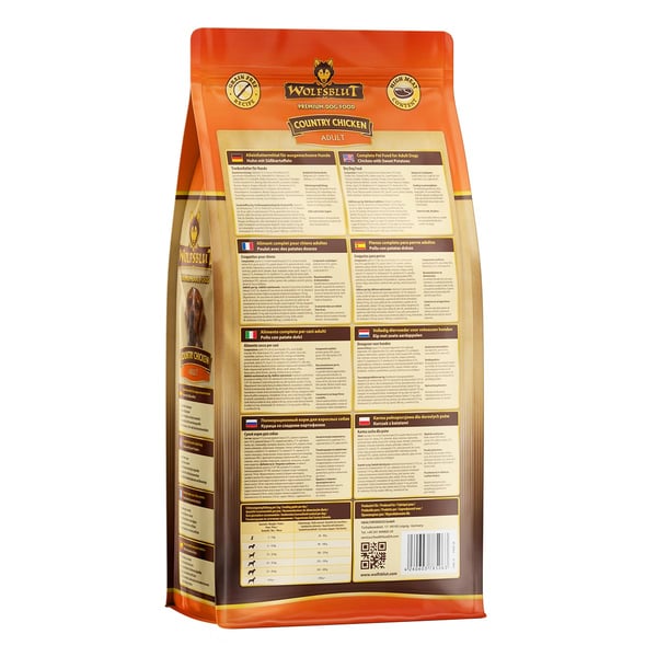 Wolfsblut Country Chicken Adult bietet deinem Hund eine natürliche Ernährung, inspiriert von den Fressgewohnheiten des Wolfs. Die Rezeptur basiert auf frischem Huhn und nährstoffreichen Süßkartoffeln, die wertvolle Vitamine und Mineralien liefern. Diese Kombination sorgt für eine ausgewogene Mahlzeit, die deinem Hund schmeckt und gleichzeitig gut tut.