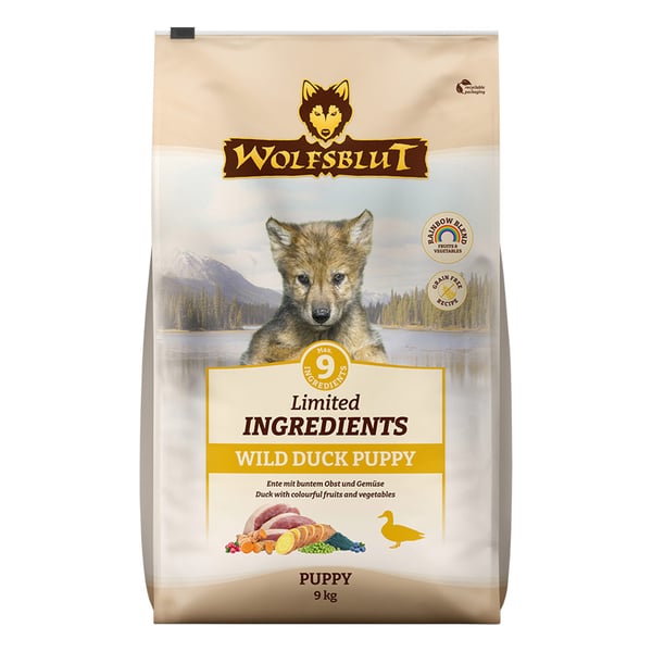 Willkommen in der Welt von WOLFSBLUT WILD DUCK PUPPY Limited INGREDIENTS – dem Trockenfutter für heranwachsende Hunde, das auf das Wesentliche konzentriert ist.