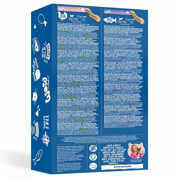 Das WOW CAT Creamy Snack Multipack wird in Deutschland hergestellt und bietet dir die Gewissheit, dass du deiner Katze ein hochwertiges Produkt gibst. Die getreidefreie Zusammensetzung unterstreicht den Anspruch an natürliche Zutaten und sorgt für eine hohe Akzeptanz bei deiner Katze. Entdecke den doppelten Schleckspaß!