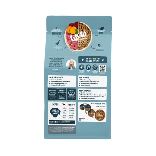 WOW DOG TROCKEN Minis SENIOR Ente wird in Österreich hergestellt und steht für Qualität und natürliche Zutaten. Das optimale Calcium-Phosphor-Verhältnis ist speziell auf die Bedürfnisse älterer Hunde abgestimmt und unterstützt ihre Knochenstruktur. Mit diesem Futter entscheidest du dich für ein Produkt, das ohne Gentechnik, Zuckerzusatz und Tierversuche auskommt. Vertraue auf die Qualität und Erfahrung, die in jedem Bissen steckt.