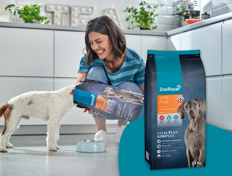 Mit ZooRoyal kommt nur Gutes in den Napf. Unsere Hundenahrung überzeugt durch hochwertige Zutaten und naturnahe Zusammensetzungen. Dadurch bieten unsere Alleinfuttermittel eine hohe Akzeptanz und beste Verträglichkeit bei Hunden. Vielfältige und hochwertige Produkte zu einem guten Preis.