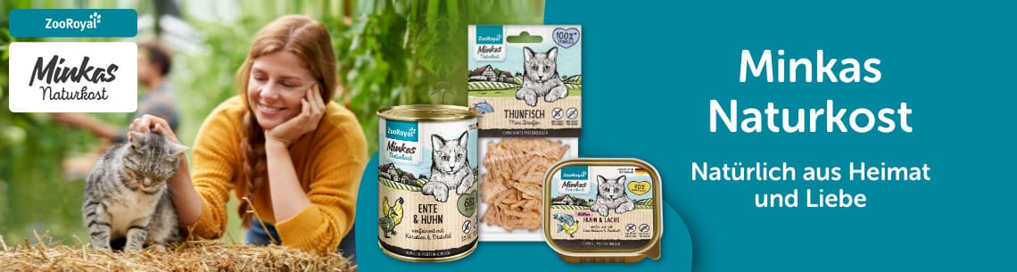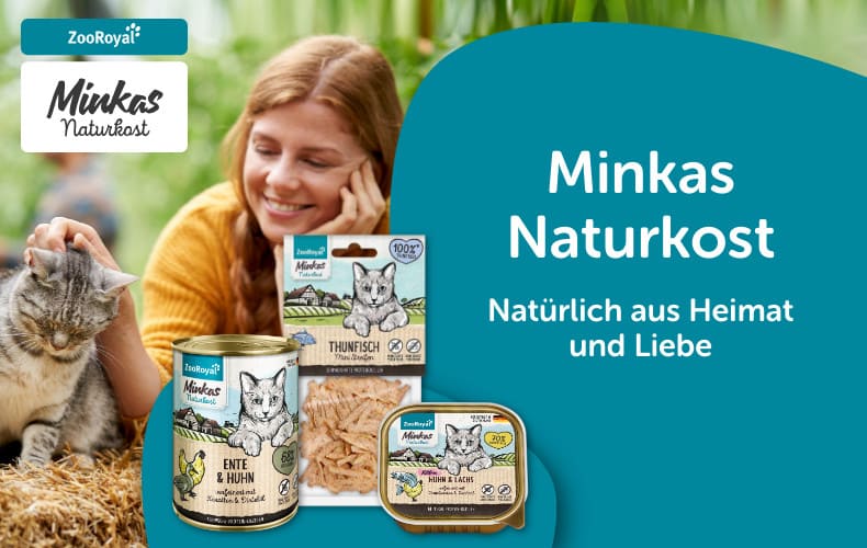 Im Minkas Naturkost Sortiment gibt es sechs Adult-Nassfutter-Sorten. Diese sind jeweils in zwei Größen erhältlich. Für Kitten werden zwei Nassfutter-Sorten angeboten, die ebenfalls in zwei Größen erhältlich sind. Zusätzlich wird das Sortiment um sechs Snacks abgerundet.