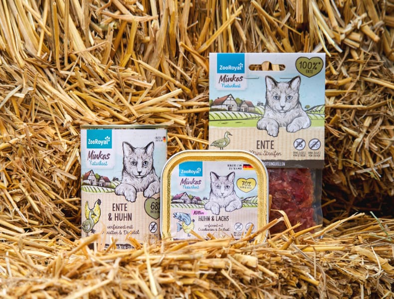 ZooRoyal Minkas Naturkost Mixpaket 6x100 g + gratis Enten Streifen ...