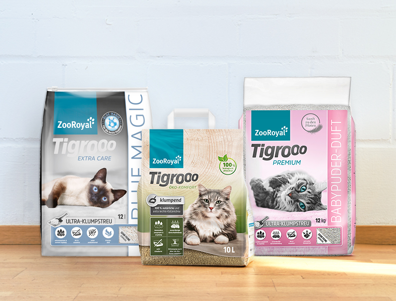 Im Tigrooo Sortiment gibt es dreizehn Streuen, die auf die unterschtiedlichen Bedürfnisse der Samtpfoten abgestimmt sind. Zusätzlich wird das Sortiment um zwei Streu-Deodorants abgerundet, um die eigene Streu zu intensivieren.